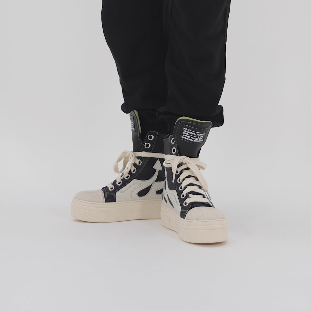These shoes feature a stunning combination of black details and white flames, making them the perfect addition to any outfit. With their superior design and quality materials, you will look your best in these gorgeous shoes.